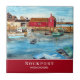 Projetado com base na pintura acrílica de Rockport Harbor em Massachusetts por Farida Greenfield. Uma encantadora captura de Rockport Harbor, com seus edifícios coloridos, vista do píer e barcos atracando no porto. Rockport é uma cidade litoral no Condado de Essex, Massachusetts, Estados Unidos. O design tem um círculo vermelho escuro no lado externo e textos que podem ser personalizados no lado superior e inferior.