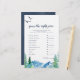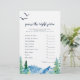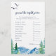 Este jogo de "adivinhar o preço certo" é perfeito para um chá de fraldas ao ar livre. O design apresenta uma paisagem de natureza selvagem pintada, azul e verde, com pinheiros de aquarela, pássaros e montanhas.