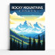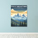 Rocky Mountains, Canada with crisp snowy peaks and deep evergreen forest in a travel poster layout. This canvas print brings a calm, outdoors vibe to a living room, office, cabin, or entryway. A solid gift for hikers, skiers, national park lovers, Canada travelers. Style it with other destinations in your Travel Poster Canvas collection.
