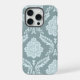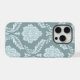 A vintage style decorative damask off-set surface pattern influenced by rococo classical design in duck egg blue color detail on a teal background.