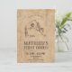 Este convite inspirado na vintage apresenta uma paleta de cores bege e castanho, perfeita para uma primeira festa de aniversário rustica do tema ocidental. A design mostra imagens charmosas e elementos rodeados, criando uma atmosfera festiva e divertida. Ideal para a primeira experiência de rodeio infantil, este convite captura o entusiasmo e a aventura do oeste selvagem.