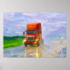 Um grande caminhão de carga vermelha escarlate percorre uma autoestrada em uma tempestade de verão. O poster perfeito para quem ama caminhões e dirige. Criado pelo nosso amigo artista Skye Ryan-Evans em zazzle.com/ravenspiritprints. Podemos fazer tamanhos diferentes se você pedir posters maiores ou menores ou podemos colocar essa imagem em outros produtos se for solicitado. Sem problemas!