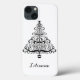 Ilustração Vintage Imagem de Natal Feliz com uma bela, elegante, preta e branca árvore de Natal vitoriana decorada com detalhes de rolagem. Um design simples, mas sofisticado. Saudações da temporada e feriados felizes!