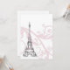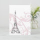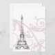 Incrível convite francês com a Torre Eiffel forte diante de um fundo de pergaminhos cor-de-rosa. Jogue com cores de papel ou cores de fundo. Oferecemos esta design em algumas variações diferentes.
