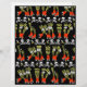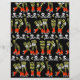 Papel de raspagem preto com design de pernas repetidas em estacas listradas amarelas e pretas, skates e joelhos de roletas vermelhos. Uma faixa de crânios e abelhas matadoras divide as pernas.