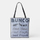 Jogar Bunco dá-me a inspiração para criar o design de Bunco. Características do este bolsa de Bunco do divertimento três dados de Bunco junto com as palavras: Bunco, boas épocas, bons risos, e bons amigos. Adicione suas almofadas afortunadas favoritas dos dados, da contagem de Bunco, lápis, sino e outros acessórios de Bunco para criar um grande saco da engrenagem de Bunco.