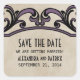 Suportes láticos e góticos salvem os adesivos de data com um fundo bege texturado vintage e bordas giratórias florescem roxas. Este design antigo é perfeito para anunciar seu gótico ou casamento vintage. Fácil de personalizar, basta adicionar os detalhes do casamento nos campos de texto fornecidos. Clique em "Personalizar" para encontrar mais opções de personalização.