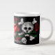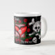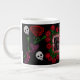 Este design Romance Escuro apresenta alguns pequenos crânios e rosas vermelhas e um coração perverso. Comece suas manhãs com uma caneca de yum e ar de mistério romântico esquisito!