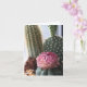 Um pop de cacto cor-de-rosa brilhante para floração a partir desta placa, com os romanos versos bíblias 8:37 no dentro.