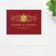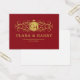 Romantic red gold elegant monogramme wedding design to decorate your Wedding Reception Tables with modern handwritten writing and give your wedding party a fun keepsake of your special day with these Classic Elegant Wedding Script Dinner Paper Essays. Create a cohesive engagement, rehearsal dinner, or wedding with matching paper products! Designed to match our modern handwritten wedding invitations. A beautiful typography-based design with a minimalist touch, featuring your names in modern handwritten script. Mr & Mrs" written in large white script and an illustration of two wedding rings together. Add your name and wedding date