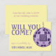 This modern “Will You Come?” wedding RSVP card blends soft mauve and pastel purple tones with a playful purple disco ball motif, creating a chic spring-ready design with a contemporary edge. Featuring a built-in QR code area for easy digital responses, this card is perfect for couples hosting a modern, retro, stylish, or fashion-forward and futuristic celebration.