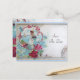 Elegante, sofisticado, vibrante e clássico design floral. Rosas vermelhas, rosadas, flores azuis com uma pomba branca carregando uma carta em uma paisagem marinha. Elaboração gráfica digital em estilo vintage por Bulgan Lumini (c). Fácil de personalizar com seu próprio texto como cartão de anúncio / cartões de lugar / cartões de salve-a-data / cartões de agradecimento /, chuveiros de noiva, aniversários, festas, chuveiros de noivado, ou qualquer outro evento que você desejar!