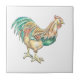 Ilustração colorida de um galo inspirada por um tecido bordado vintage em azulejos/trivetos decorativos. Copyright Dominic A. White.