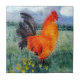 Azulejo cerâmico com um Cockerel colorido que penetra sobre a grama, a partir da minha pintura original de vidro de galinha com galo. ©Annabel Potter