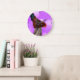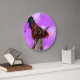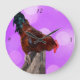 Rooster, Relógio, apresentado em um fundo roxo de um anzol cor-de-rosa é um Rooster em uma cerca voltada para baixo,https://www.zazzle.com.au/naturalcauses