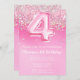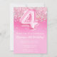 Rosa 4º Aniversário Convite Girly Pink Glitter
