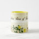 A caneca bonito da lembrança de Texas com os gráficos de rosas amarelos e um par de botas de vaqueiro das senhoras contra um fundo de madeira para fora lavado, texto lê, rosa amarelo de Texas.