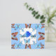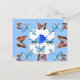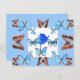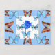 Rosa azul com borboletas azuis e multicoloridas em um cartão-postal. As borboletas são lindas. Essas borboletas e rosa azul iriam puxar 2 viagem a qualquer momento, então mande essas borboletas 2 iluminarem alguém dia. deus abençoe!