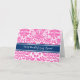 Cartão de agradecimento à dama de honra em fuchsia brilhante moderno e chic, azul naval escuro e branco padrão damask floral vintage, a maneira perfeita de mostrar seu apreço à sua comitiva de noiva. Disponível em convites correspondentes e uma ampla seleção de outros produtos de casamento.
