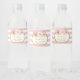 Rótulo de garrafa de água de texto personalizado em rosas claro e padrão de listras brancas com flores cor-de-água rosa claro e cor-de-rosa claro e moldura dourada. Pode ser personalizado para qualquer ocasião, perfeito para chás de panela, casamentos, chás de fraldas e festas de aniversário.
