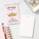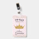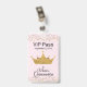 Crachá acessório do partido chique de Quinceañera feito em um rosa no teste padrão cor-de-rosa, com uma coroa do ouro e os gráficos do brilho do ouro, ao longo da parte superior e da parte inferior. O texto preto está pronto para personalizar para o dia grande da sua filha. Os produtos de harmonização estão disponíveis.