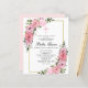 As rosas e peônias cor-de-rosa criam uma fronteira floral muito bonito neste convite ao batismo. Estão aninhados numa variedade de verde e folhas criando uma vibração botânica moderna. O nome da sua filha está escrito em uma fonte de script grande. A parte de trás do convite é uma cinzenta brilhante e rosa feminino.