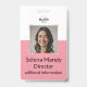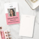 Crachá vertical cor-de-rosa personalizado com foto e nome do funcionário, texto personalizável para número de identificação do funcionário, cargo, título, localização ou outros detalhes importantes. Adicione o logotipo da sua empresa no topo. A parte de trás do crachá inclui um campo de texto personalizado para informações de devolução ou outros detalhes importantes.