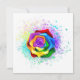 Rosa grande e florescente com pétalas arco-íris sobre fundo branco, pintadas com pedaços de tinta colorida e brilhante. 3d