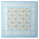 Um Azulejo de cerâmica química, com um padrão bonito de Dogroses sobre fundo azul-céu dentro de uma borda de Xadrez azul-céu e branca. Parte da coleção Posh & Painterly 'Rosy Posy'. Este padrão irá ajustado todos os azulejos - adicione uma moldura de madeira para fazer um Trivet.