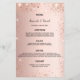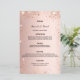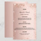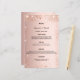 Um menu de casamento elegante. Rosa dourado falso fundo metálico, decorado com poeira brilhante falsa. Modelos para seus nomes, data e menu de casamento.
