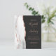 A borda esquerda deste elegante e moderno convite de casamento apresenta uma cor branca e cinza de água, borda agitada com falso brilho de ouro rosa. O texto personalizável combina a letra rosa-rosa, a letra copperplate e a letra itálica em um fundo preto de ardósia escura. O verso fornece espaço para detalhes do casamento em um fundo fora do preto sólido, junto com um código QR que os convidados podem digitalizar para visitar seu site e RSVP.
