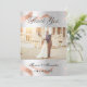Um casamento moderno Obrigado, cartão com fotos. Um fundo com aspecto fino prateado decorado com veias de mármore rosa. Personalize e adicione sua foto e obrigado nota. Voltar: adicione o URL do site de casamento ao código QR para mais fotos.