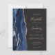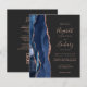 A borda esquerda deste elegante convite de casamento moderno apresenta um marinho azul de aquarela agate bordado com falso brilho rosa de ouro. O texto personalizável combina manuscrito de rosa, fontes em copperplate e itálico em um fundo de cinza de carvão escuro. Adicione mais detalhes no verso, juntamente com um código QR para ajudar seus convidados a visitar seu site de casamento.