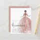 Rosa de orçamento Dourado Cabelo Escuro QR Quinceañera Convite. Um alternativo de 4,5 pol x 5,6 pol com preço inferior. Disponível em um STOCK DE CARTÃO SEMI GLOSS 110 lb, que é a opção padrão (recomendada para convites), OU um STOCK DE PAPEL THINNER SATIN FINISH 80 lb (ideal para gabinetes). Esta versão do presente convite é feita tendo em mente as partes que se realizam num hotel ou restaurante (ou qualquer local com um sítio web), substituindo o código QR no verso por um código QR no seu sítio web. Você pode criar códigos QR gratuitamente on-line. Ou simplesmente pesquise no "Criador de código QR" e muitas opções surgem para criar gratuitamente. Você também pode deletar o código QR e o texto na parte traseira, se não for necessário por meio de personalização adicional. Estilo elegante para os seus convites de festas de aniversários 15 com a visão de trás de uma menina de cabelos escuros num lindo vestido de ouro rosa à direita, e Quinceañera num roteiro de estilo manuscrito. Personalize facilmente o resto do texto para seus próprios detalhes. Um plano de fundo rosa dourado de coordenação está do outro lado, que pode ser alterado para outra cor se você quiser, por meio de personalização adicional, assim como a cor do texto.