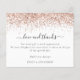 Um valor para o alternativo do ORÇAMENTO em tamanho menor de 4,5 x 5,6" de semirbrilho de 110 lbs, que é de espessura semelhante a um cartão postal (no entanto, não é adequado para uso como cartão postal). POR FAVOR, OBSERVE QUE HÁ UM convite por folha. Rosa De Orçamento Foto De Foto De Literatura Dourada Obrigado. Um toque de vidro com uma falsa borda brilhante em ouro rosa no topo e um roteiro na moda com baloiços para o Amor e Obrigados. Personalize facilmente o texto com sua mensagem e nomes.
