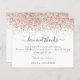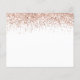 Um valor para o alternativo do ORÇAMENTO em tamanho menor de 4,5 x 5,6" de semirbrilho de 110 lbs, que é de espessura semelhante a um cartão postal (no entanto, não é adequado para uso como cartão postal). POR FAVOR, OBSERVE QUE HÁ UM convite por folha. . Rosa de orçamento Dourado Glitter Love e Obrigados Casamento. Um toque de vidro com uma falsa borda brilhante em ouro rosa no topo e um roteiro na moda com baloiços para o Amor e Obrigados. Personalize facilmente o texto com sua mensagem e nomes.