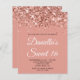 Crie seu próprio convite para a sua filha para a festa de aniversário de 16 anos. Gráficos de arte digital brilhantes de rosa dourado brilhante decorativos sobre uma cor sólida de fundo. Os brilhos e a brilha do luxo serão criados por elementos artísticos que impressão gostam de uma foto. Escolha um envelope, se necessário.