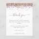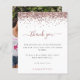 Rosa Glitter Photo Hen Party Obrigado. Um alternativo de 4,5 pol x 5,6 pol com preço inferior. Disponível em um STOCK DE CARTÃO SEMI-GLOSS 110 lb, que é a opção padrão (mais espesso para convites), OU um STOCK de PAPEL THINNER FINISH 80 lb FINISH (ideal para gabinetes). Os envelopes são um extra opcional e são ligeiramente maiores que o tamanho da placa. Uma borda de ouro-rosa está no topo, e Obrigado está em um script de escrita manual em rosa empoeirado. Personalize facilmente o texto para seus próprios detalhes. Na parte de trás troque sua foto favorita do seu chá de orientação para retratos.