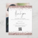 Um valor para o alternativo do ORÇAMENTO em tamanho menor de 4,5 x 5,6" de semirbrilho de 110 lbs, que é de espessura semelhante a um cartão postal (no entanto, não é adequado para uso como cartão postal). POR FAVOR, NOTE que existe UM por folha. Rosa de Orçamento Dourado Glitter Código QR Casamento Obrigado. Adicione seu código QR à galeria de fotos de casamento no verso substituindo o código QR na amostra. Você pode criar códigos QR gratuitamente on-line. Basta pesquisar "Criador de código QR" e muitas opções surgem para criar gratuitamente. Um toque de vidro com bordas falsas de brilho no rosa gold e um script de estilo de letra de na moda para Obrigado. No verso, substitua a imagem por sua favorita do dia como guardiã para seus convidados. Personalize facilmente o resto do texto com sua mensagem e nomes.