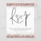 Um valor para o alternativo do ORÇAMENTO em tamanho menor de 4,5 x 5,6" de semirbrilho de 110 lbs, que é de espessura semelhante a um cartão postal (no entanto, não é adequado para uso como cartão postal). POR FAVOR, NOTE que existe UM por folha. Rosa de orçamento Dourado Glitter Código QR Casamento RSVP de Casamento de Código QR.. Um gabinete de opções conveniente para pedir aos seus convidados que digitalizem o seu código QR para o seu site de casamento para RSVP. Uma tipografia de na moda set em preto para o cabeçalho principal RSVP complementando o resto do texto que você pode personalizar facilmente, com código QR no verso. Simplesmente substitua por você. Bordas de falso brilho em ouro de rosa estão em ambos os lados.