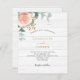 Madeira branca como fundo. Decorados com ouro-rosa e folhas de eucalipto cor-de-rosa-esbranquiçada, flores de rosa e cor-de-rosa-esbranquiçada, galhos, verde-verde e um cinzeiro de ouro falso. Personalize e adicione seus nomes e detalhes do casamento. Letras pretas e ouros coloridas. 1 folha = 1 convite impresso de borda a borda.