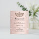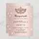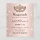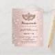 Para um Mascarada elegante, 16, 16 anos. Um fundo de aparência metálica fino rosa dourado. Decorado com pó falso prateado brilhante e uma máscara de mascarada. Personalize e adicione um nome, idade e detalhes da festa. O nome é escrito com um script de estilo manuscrito