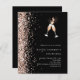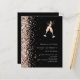 Para uma elegante festa de aniversário 50th (ou qualquer idade). Um clássico fundo negro. Decorado com rosa dourado falso brilho e um par de flautas. Personalize e adicione um nome e detalhes da parte. 1 folha = 1 convite impresso de borda a borda.