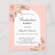 Um quadro de arco decorado com ouro rosa e flores, rosas e grama-pampas cor-de-rosa-pincel. Personalize e adicione um nome e detalhes.