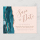 Este elegante orçamento salva a placa de data apresenta uma borda azul-lacrimejante agate cortada com falso rosa dourado. O texto personalizável combina um script de manuscrito empoeirado de rosa, fontes em copperplate e itálico em um plano de fundo cor-de-rosa pincelado. O verso apresenta um design de gate rosa e lacado correspondente.