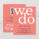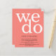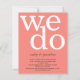 Um valor para o alternativo do ORÇAMENTO em tamanho menor de 4,5 x 5,6" de semirbrilho de 110 lbs, que é de espessura semelhante a um cartão postal (no entanto, não é adequado para uso como cartão postal). POR FAVOR, OBSERVE QUE HÁ UM convite por folha. ROSA de Texto Coral Simples de ORÇAMENTO Convite de casamento de Código QR. Adicione seu código QR ao seu site de casamento no verso para que seus convidados possam RSVP e ver todos os detalhes on-line sem a necessidade de gabinetes separados. Tipografia moderna com We Do em letras grandes brancas no topo e nomes e detalhes abaixo em um fundo de cor-de-rosa rosa de coral.