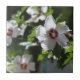 Um azulejo cerâmico com foto de um Rosa de Sharon.