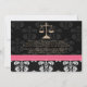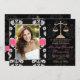 Adicione sua imagem da foto ou do favorito a estes anúncios e convites florais preto e branco elegantes e formais da graduação da escola de direito do damasco com as escalas de um ouro do design de justiça e do design costurado fúcsia impresso do olhar da fita do rosa quente. Personalize-o para dizer o que quer que você quer no traseiro e dianteiro dos anúncios e dos convites da graduação do formando do advogado. © Chrissy H. Estúdio dos trabalhos de arte, LLC. Todos os direitos reservados.