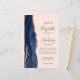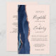 A borda esquerda deste elegante convite de casamento moderno apresenta um marinho azul de aquarela agate bordado com falso brilho rosa de ouro. O texto personalizável combina a escrita manual de cinzas de carvão, fontes em copperplate e itálico em um fundo cor-de-rosa pincelado. Adicione mais detalhes no verso, juntamente com um código QR para ajudar seus convidados a visitar seu site de casamento.