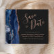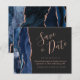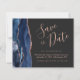 Este elegante orçamento salva a placa de data apresenta uma borda azul-marinho agate com cor d'água cortada com cintilação falsa de rosa. O texto personalizável combina o script de manuscrito rosa-rosa, as fontes em copperplate e itálico em um fundo preto de slate. O lado inverso apresenta um design agate correspondente.
